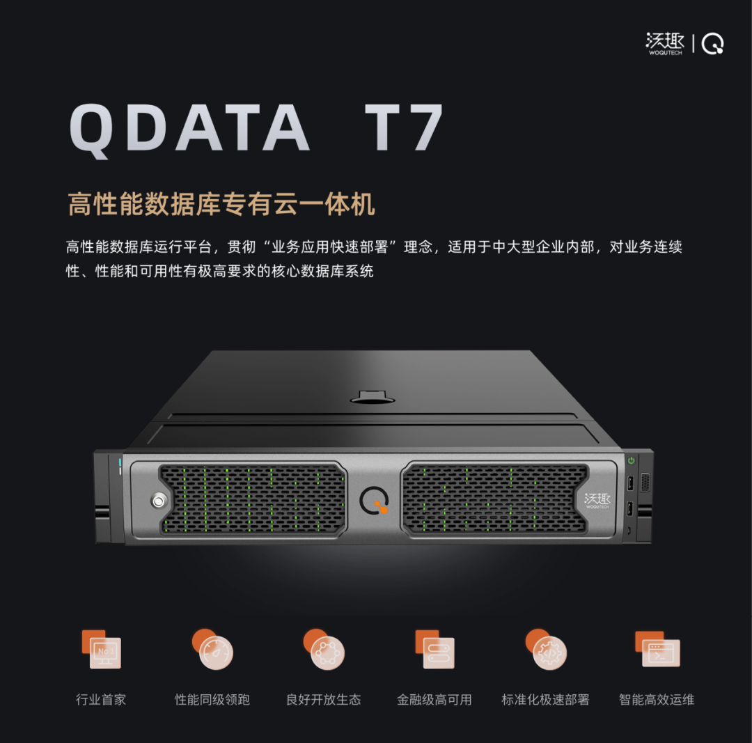 搭载英特尔® 至强®系列处理器的沃趣专有云一体机新一代产品 QData T7 拥有同级领先的极致性能,全面覆盖用户的双活、容灾、备份、开发测试的各个使用场景。结合沃趣科技 QDAT、NDA、QLink、QST等自主研发技术,实现从底层硬件到软件,从存储到计算全栈加速,充分释放业务自由度,为用户的关键业务运行提供强大性能和可靠性保障。