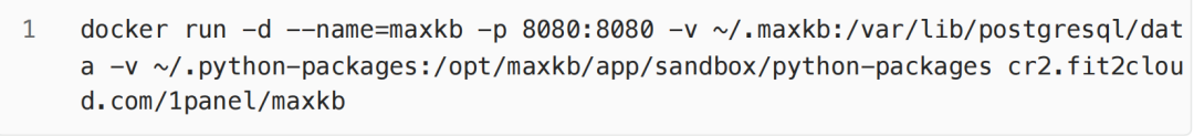 部署环境选⽤CentOS系统,安装maxkb前请提前安装好Docker ,—键安装Maxkb命令如下: