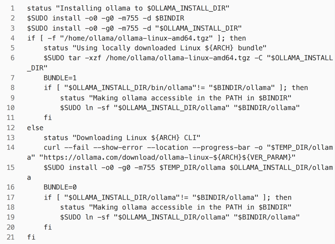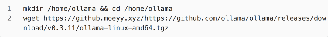 注 :本次下载ollama模型使⽤了GitHub ⽂件加速下载,也可直接从ollama官⽹下载安装,命令为: