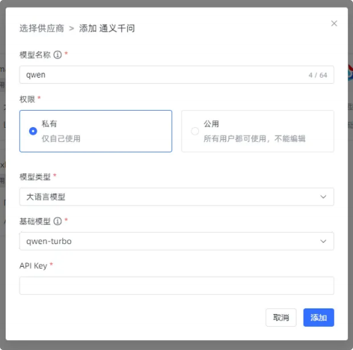 进⼊系统管理-模型设置中,列表中列出了所有调⽤模型,选择已申请到的⼤模型API Key ,将授权填⼊ 即可。