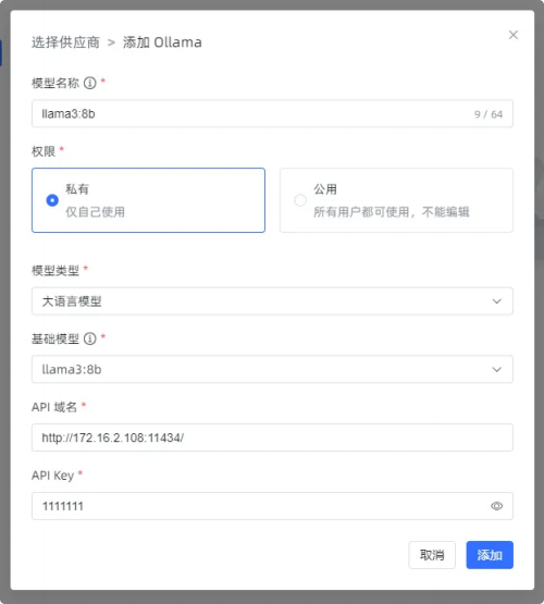 进⼊系统管理-模型设置中,列表中列出了所有可调⽤模型,选择Ollama