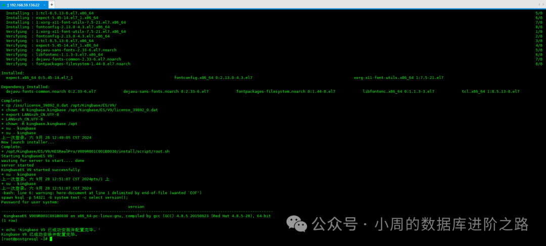 echo "Kingbase V9 已成功安装并配置完毕。"