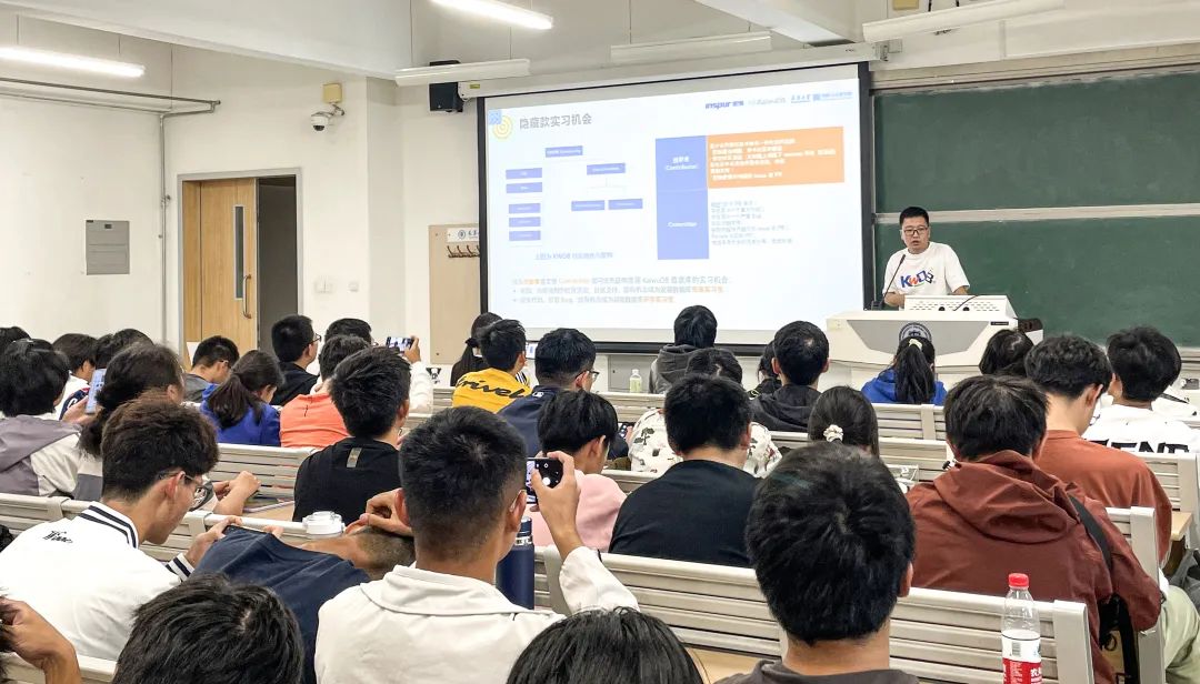 随后,陈磊向在场学生重点介绍了 KWDB 社区成长路径,以及如何到社区贡献及互动。“我们希望可以帮助大家增加更多开源实践经验,并有机会在社区树立个人 IP,拓宽职业发展空间,帮助大家清晰地了解到参与开源技术研发的意义和长远价值”,陈磊说道。