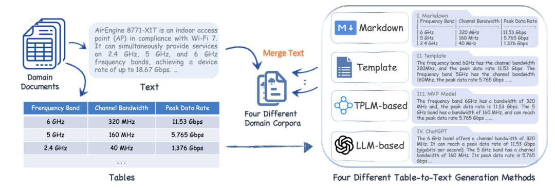例如,表格到文本的方法可以将表格转换为文本,其他技术则将视觉内容转换为基于文本或属性的描述,然后由大型语言模型处理。