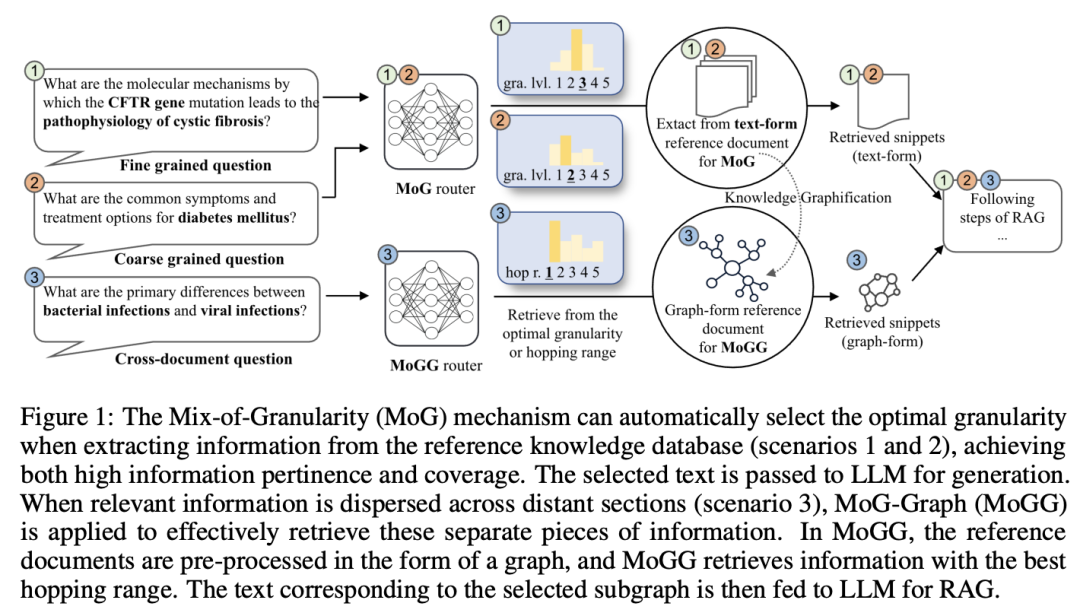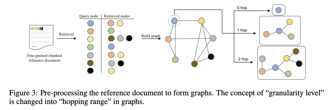 为解决这些问题,Knowledge-Graph-Prompting 使用实体识别、TF-IDF、KNN 及文档结构层次来构建文档图并提取子图以回答问题。 桥接问题依赖于顺序推理 比较问题依赖于对不同段落的并行推理 结构化问题依赖于从相应文档结构中获取内容 MoGG 将一句或两句作为最小的语义单元,使用这些单元作为节点,并基于节点之间的语义相似性构建边。它还训练了一个预测器,决定回答查询所需的文本块粒度,进而确定所需子图的大小。