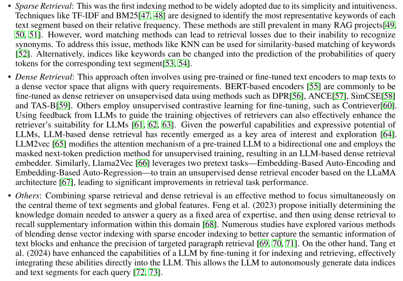 索引: 包括稀疏检索、稠密检索和混合检索