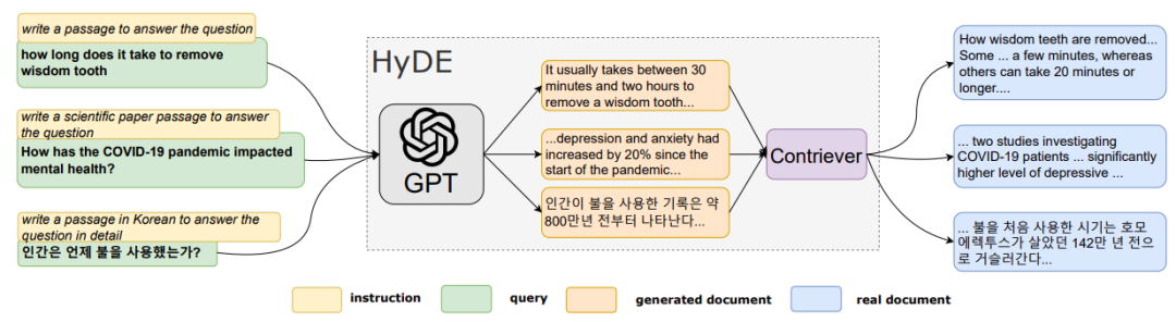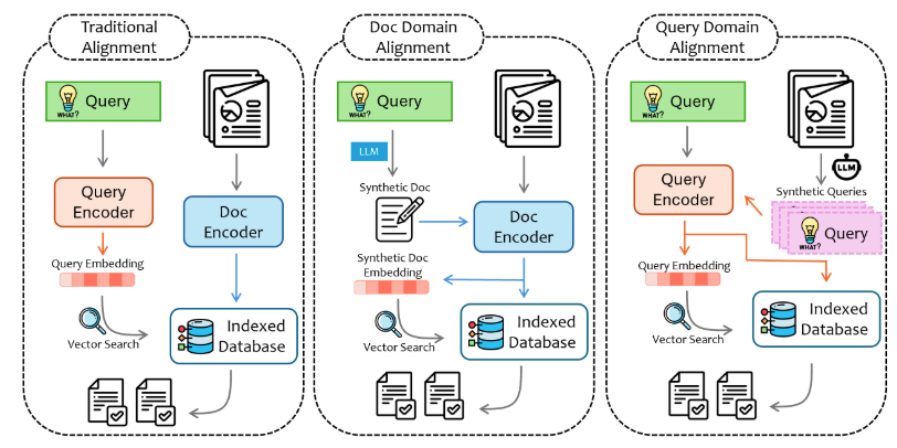 传统对齐: 将文档片段和查询映射到相同的编码空间。 文档域对齐: 先生成合成答案,再用这些答案检索相关数据,解决查询和检索数据不在同一分布空间的问题。HyDE 是该领域的一个显著工作。