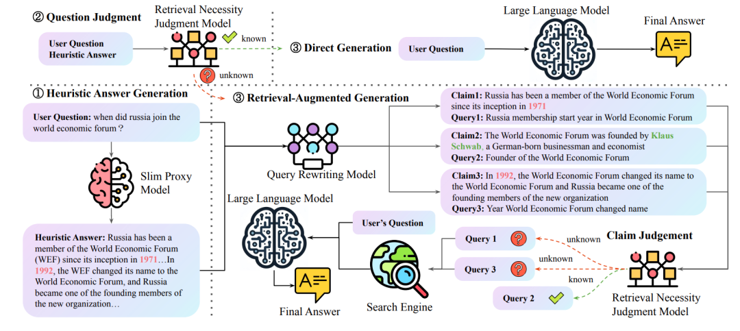 自适应检索量: 不同问题可能需要不同数量的检索上下文,具体的检索数量取决于问题本身和数据集。固定数量的检索可能会导致信息噪音或信息不足。 推理与检索之间的协调: 推理可以引导检索的重点,而从检索信息中获得的见解可以迭代地优化推理策略。处理这些复杂性需要智能地集成和选择性利用外部数据,并充分发挥LLMs固有的推理能力。