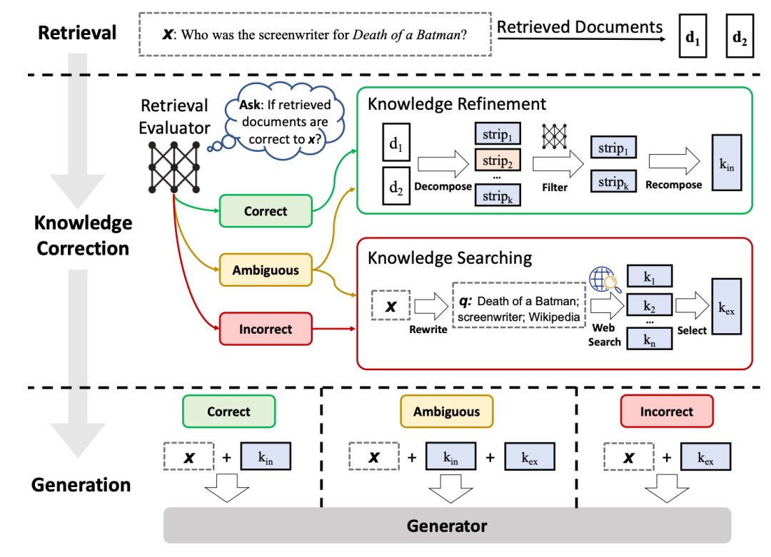 此外,一些研究专注于预训练一个专门用于事实验证的小型语言模型,用于过滤掉不正确的检索文本块,从而提高检索文本的质量。