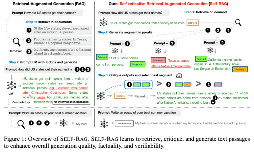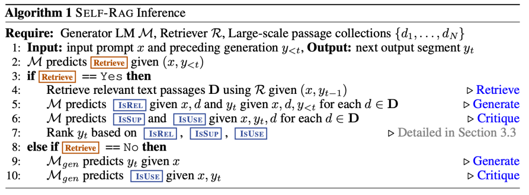 另一方面,Self-RAG 通过微调一个大型模型,使其自主决定何时继续搜索,何时停止搜索并开始回答问题。