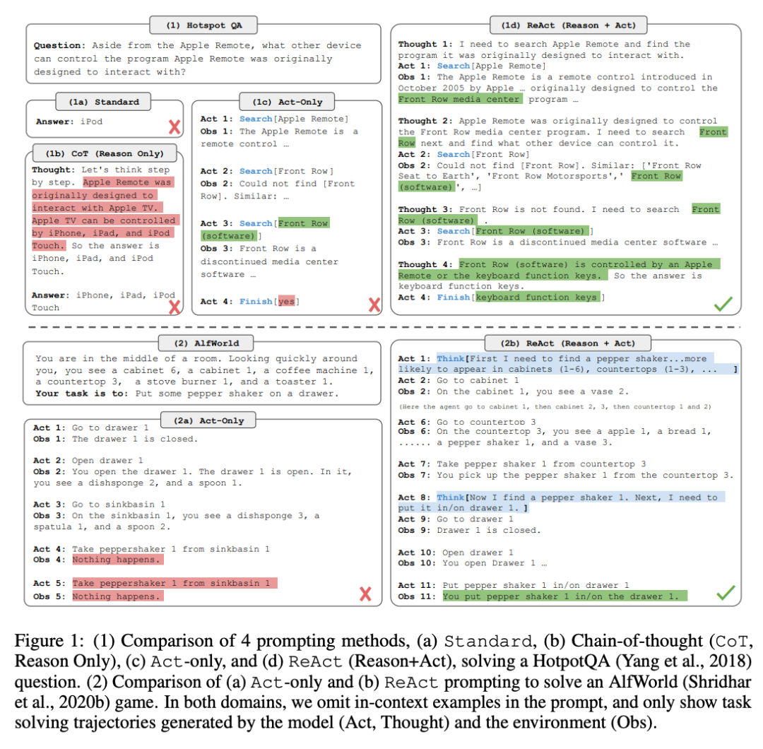 基于规划的策略 在检索前生成逐步的检索计划,或在检索过程中动态生成计划,可以优化每一步的检索重点,从而高效地引导迭代的RAG系统。例如,ReAct 通过逐步更新每一步的目标,缩小回答问题所需的知识差距。
