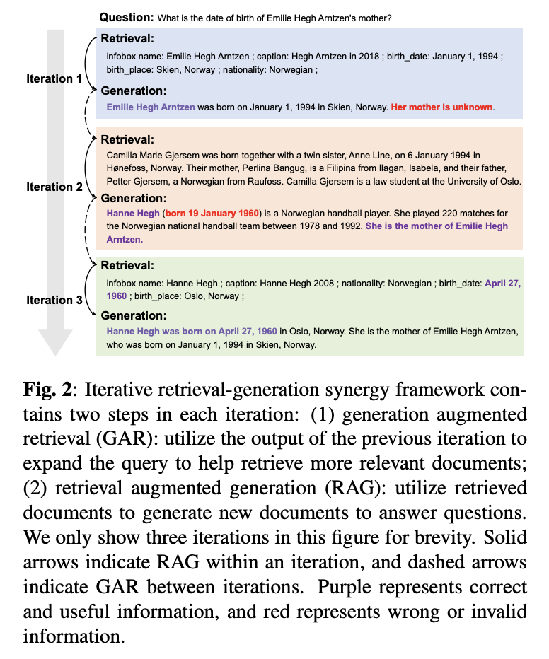 信息填补策略 ITRG 引入了一个迭代检索生成协作框架,先基于已有知识生成答案,然后在后续轮次中继续检索和生成未知部分的响应。
