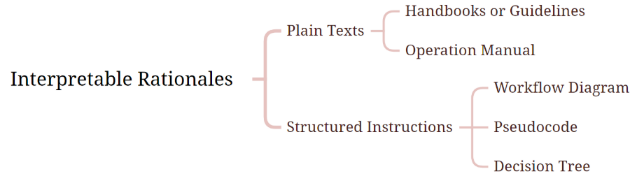要解决这些类型的查询,常见的方法是从数据集离线识别并提取规则和指南,然后检索相关项目。对于生成推理理由,一些工作如STaR 和 LXS 使用大型语言模型(LLM)来生成理由。前者采用迭代的少样例示例方法,从小数据集生成到大数据集;后者引入了两角色解释提取过程,其中学习者模型生成解释,评论者模型对其进行评估验证。