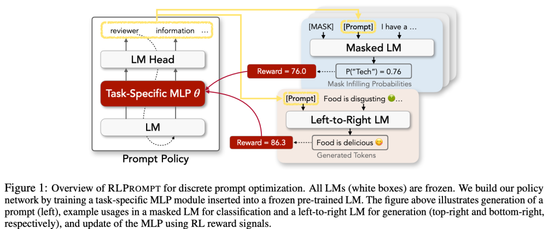 Rlprompt 也采用强化学习方法,训练一个适配器,基于 LLMs 回答的相对准确性反馈帮助较小的语言模型生成最佳提示词。
