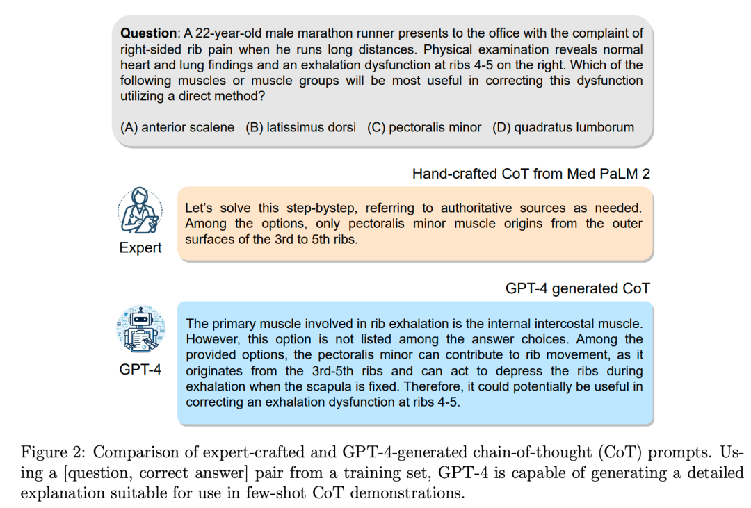 一些集成方法,如 MedPrompt ,包括用GPT-4生成的链式思维作为训练示例,并通过自验证将其与 KNN 检索的上下文学习方法结合使用。