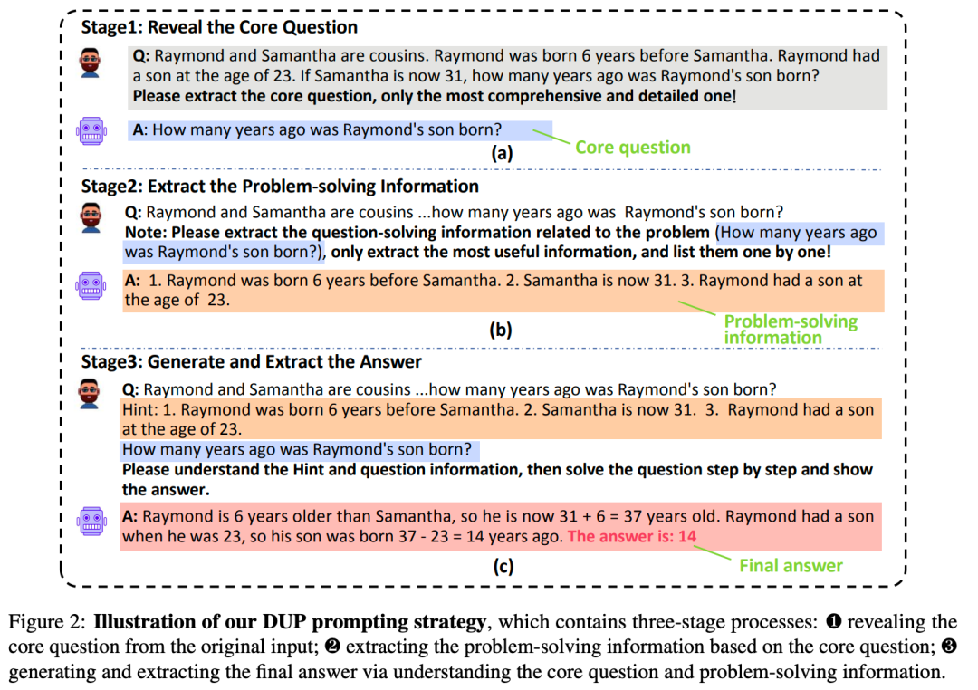 同样,DUP 识别了大型语言模型在使用思维链方法解决复杂数学文字问题时面临的三个主要问题:语义误解、计算错误和步骤缺失,其中语义误解是主要的限制因素。通过鼓励大型语言模型深入理解问题并提取解决问题的关键信息,可以显著提高其解决数学问题的能力,特别是通过解决语义误解。