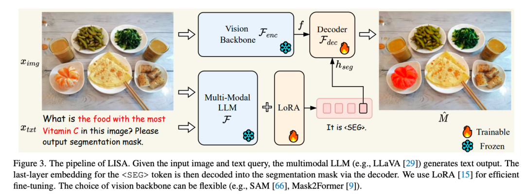 LISA 利用一小组涉及推理的段落数据样本微调了多模态LLM LLaVA,显著改善了模型的推理分割能力。