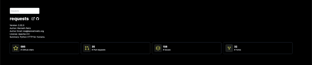 目标很简单:如果用户查看的包托管在 GitHub 上,则在我们的主要 ClickPy 分析页面中添加一些简单指标,比如星标、关注、问题和拉取请求的数量。
