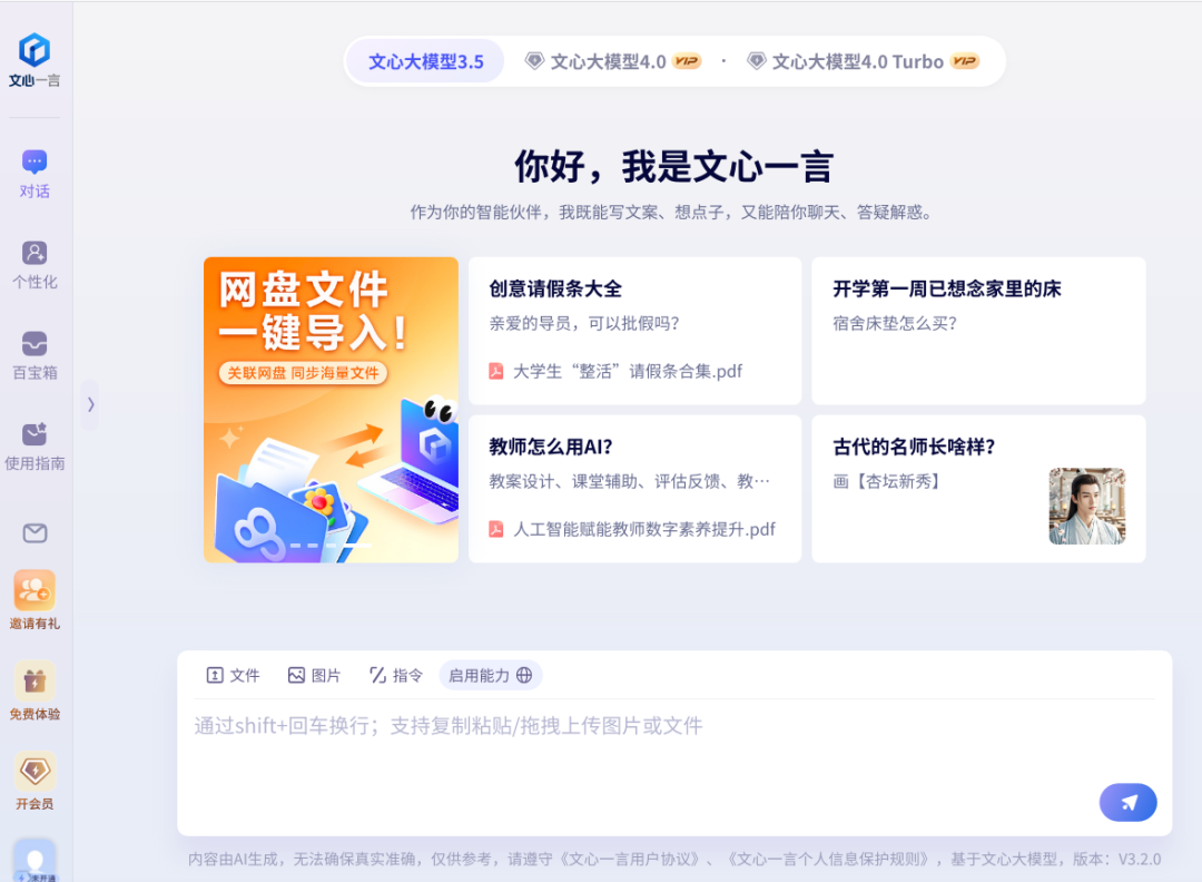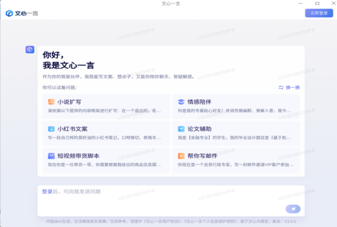 百度文心一言,依托文心大模型,集理解、生成、逻辑、记忆于一身。它精通潜台词、复杂句式与专业术语,迅速产出文本、代码、多媒体内容,助力工作学习高效升级。