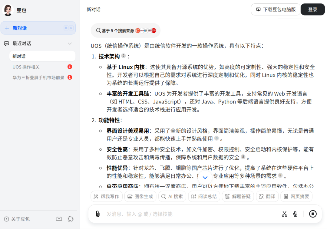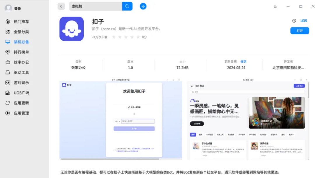 欢迎统信UOS用户登陆统信应用商店下载AI应用,即刻享受大模型带来的智能、便利、高效的AI创新应用体验。