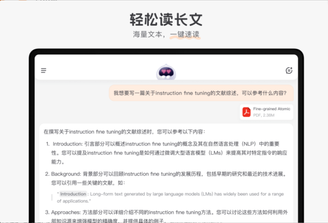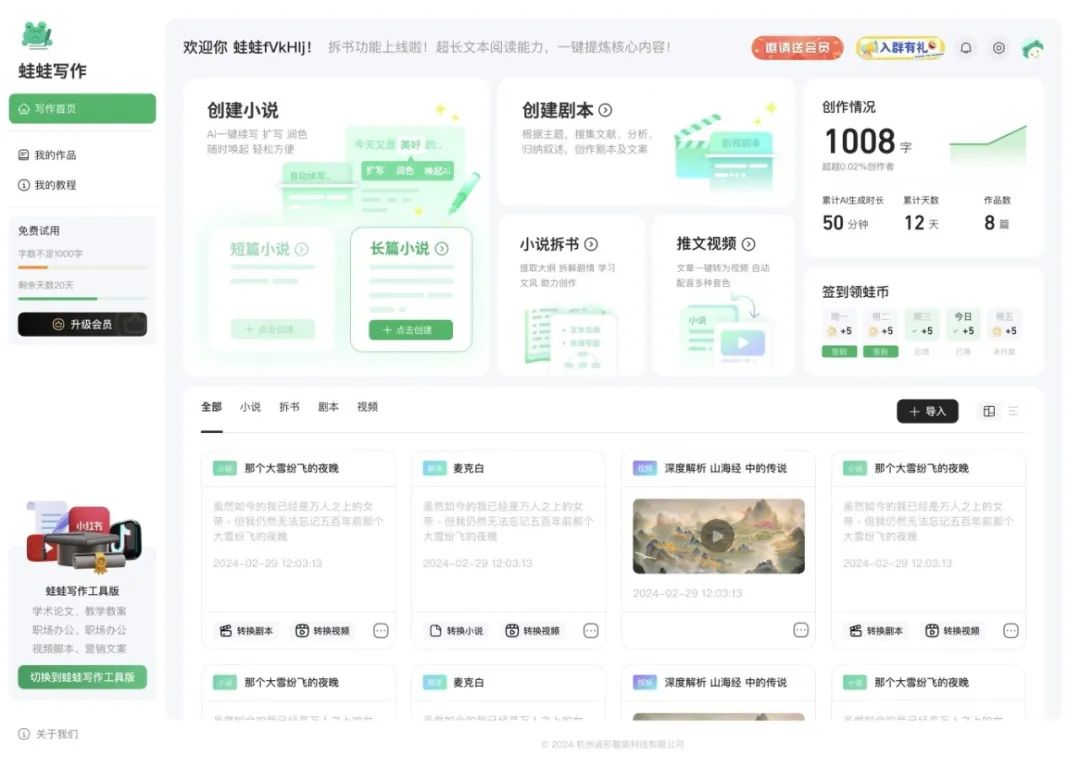 蛙蛙写作是一款专为提高写作效率设计的工具,覆盖多种写作任务、广泛领域及细分场景,并提供大量指令支持。它还配备专属AI助手,可以随时与之对话,便于准确理解和响应用户创作需求,精确生成文本内容。
