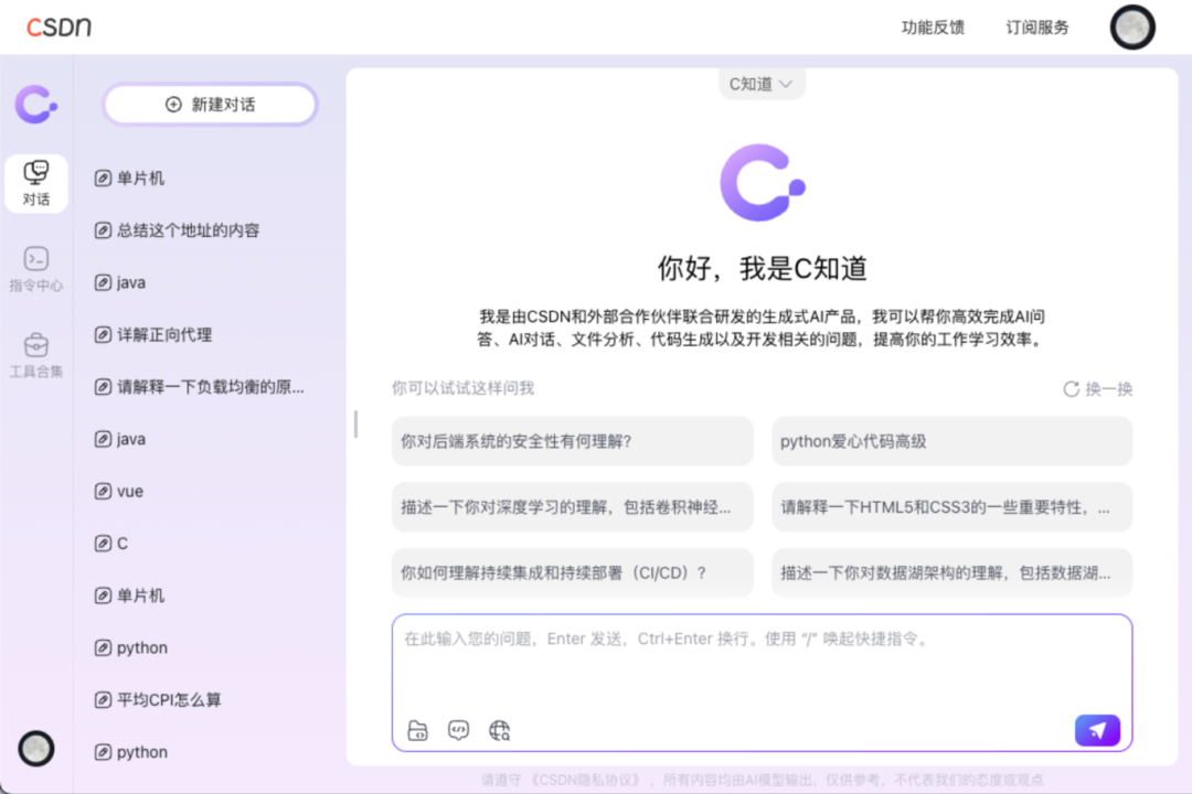 C知道是CSDN专为程序员设计的AI技术问答平台,集代码生成、解析、技术内容创作、文档解读及链接阅读等功能于一身,旨在提供即时技术解答,提升编码效率与学习效果。