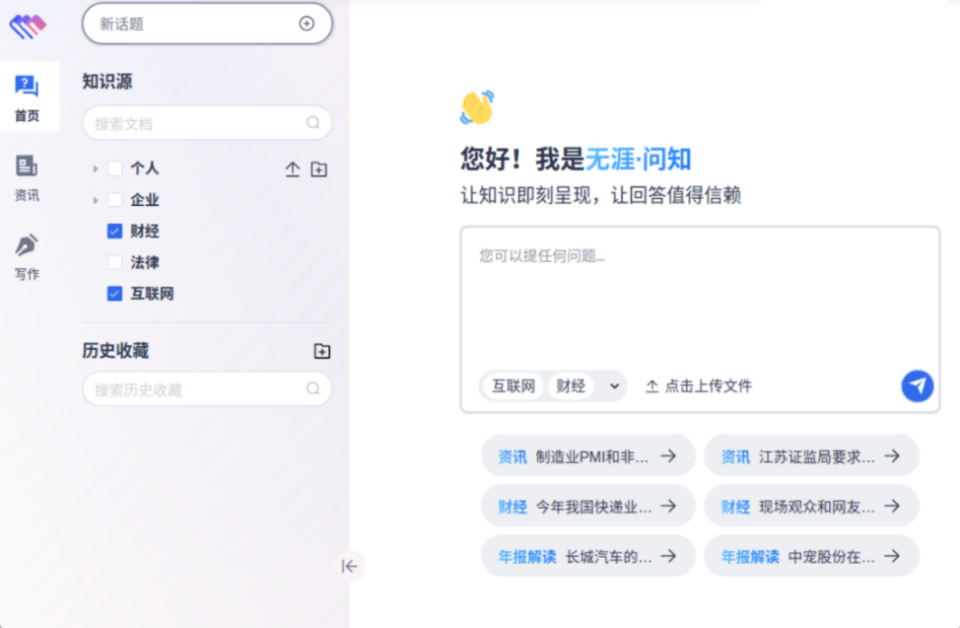无涯问知是一款基于星环大模型的企业级问答产品,整合个人与企业知识库,支持多格式文件上传及自动化知识处理,可对接外部数据库,保障信息安全,提供多模态数据的语义查询服务。