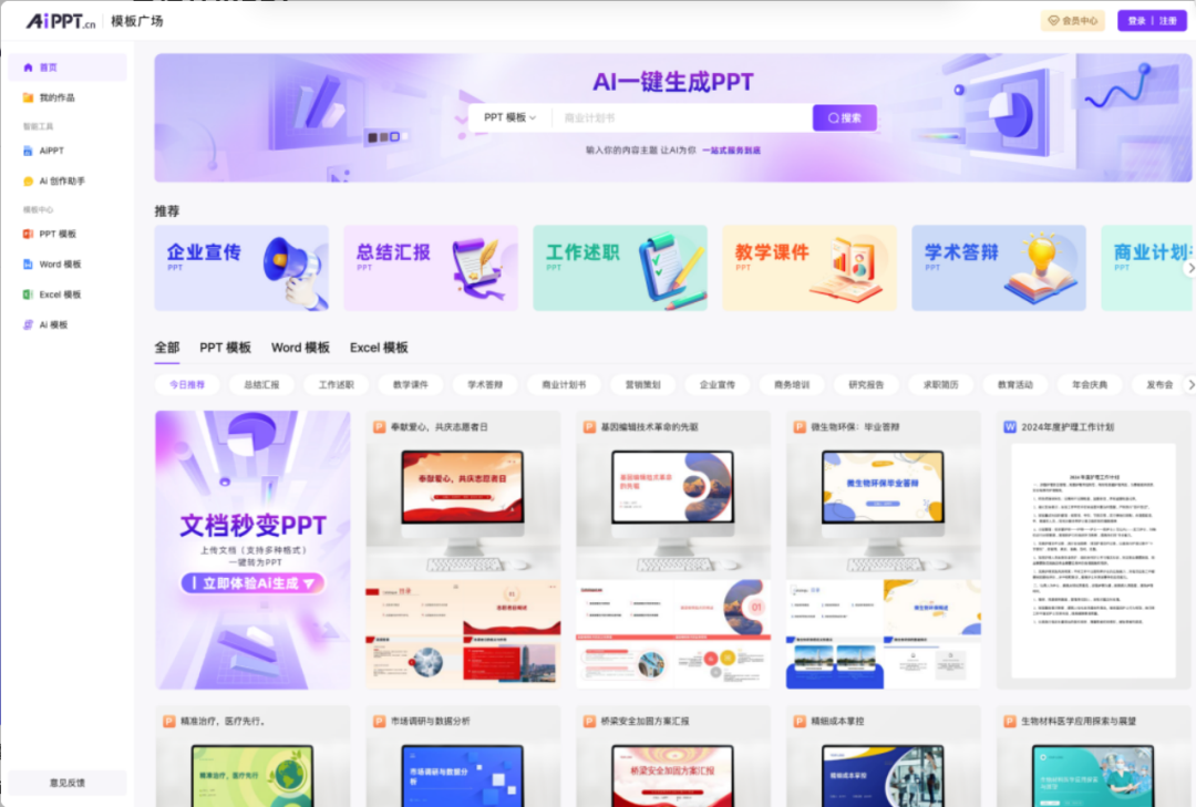 AiPPT.cn提供超过10万套原创模板,确保版权无忧。利用人工智能技术,实现从内容创作到设计排版的自动化,用户可以快速在线编辑并下载专业且美观的PPT,大幅提高工作效率。