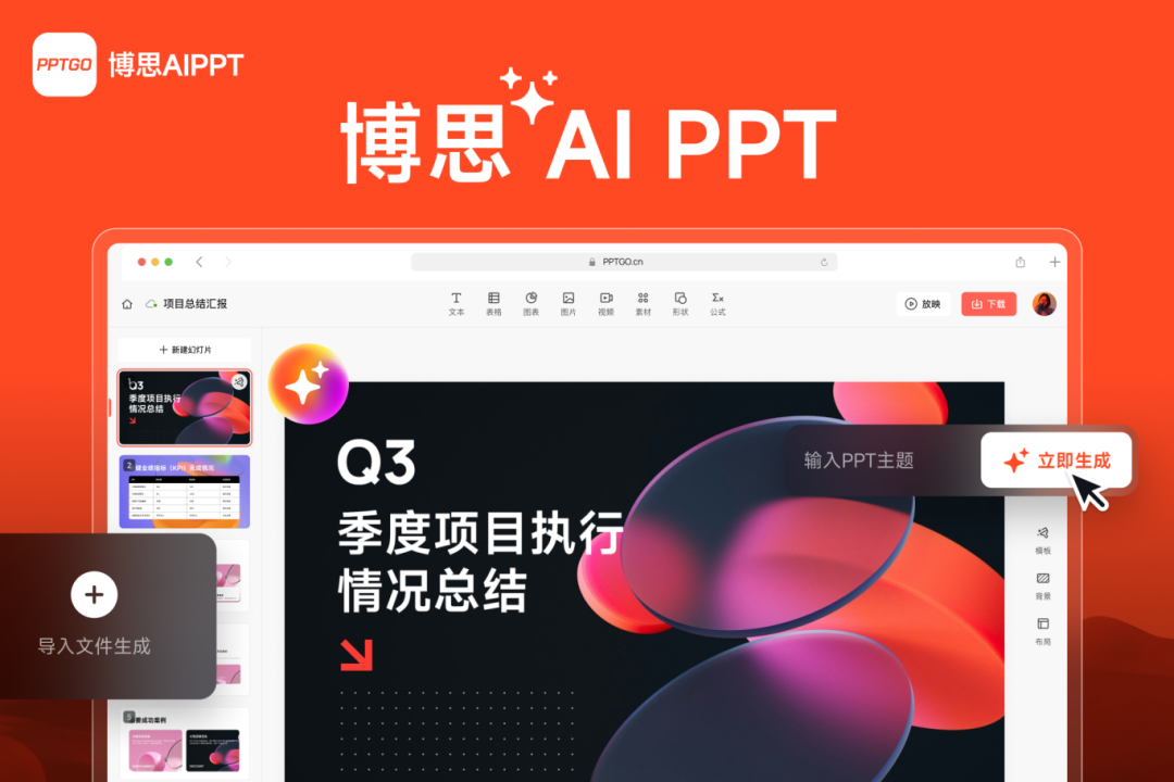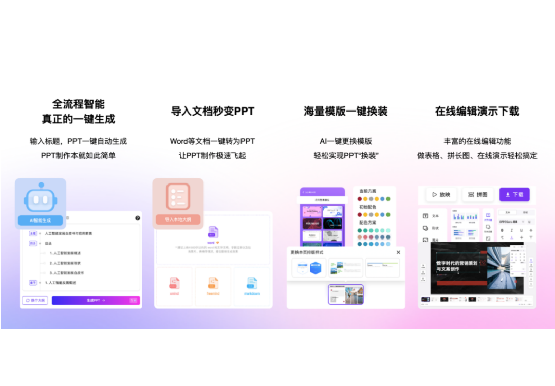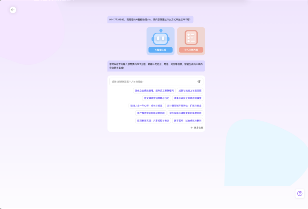 一款提升工作效率的AI工具,适用于生成PPT。只需一句话输入,即可获得涵盖大纲、模板、文案、配色、排版和配图的完整PPT,适用于营销、汇报、数据分析等多种场景。