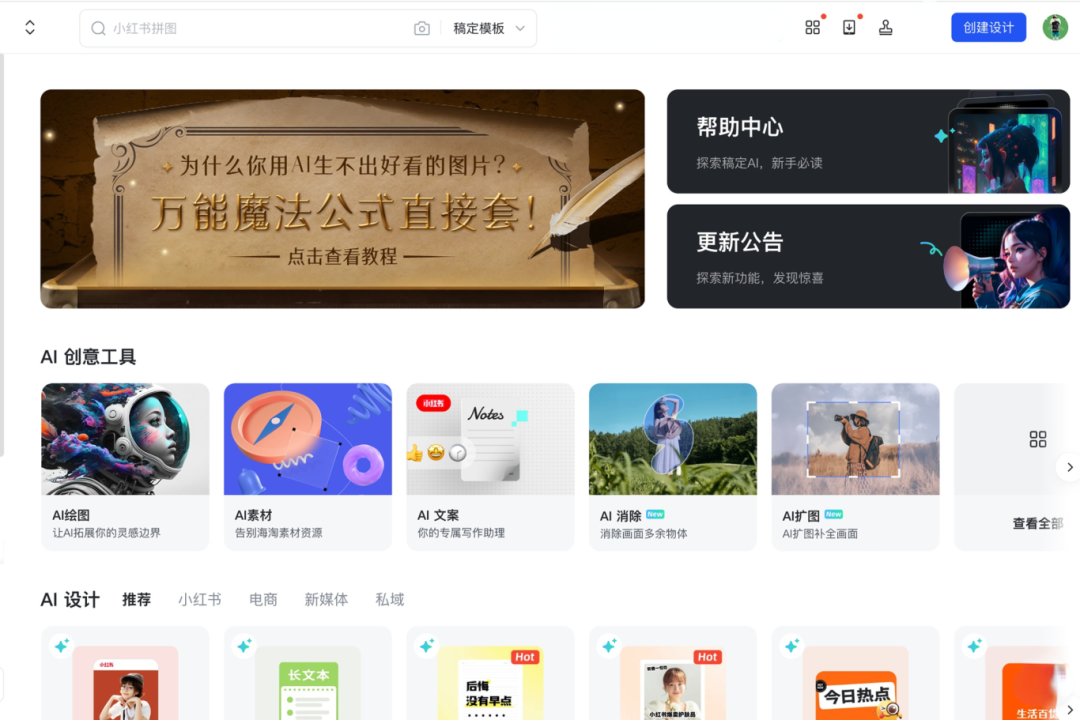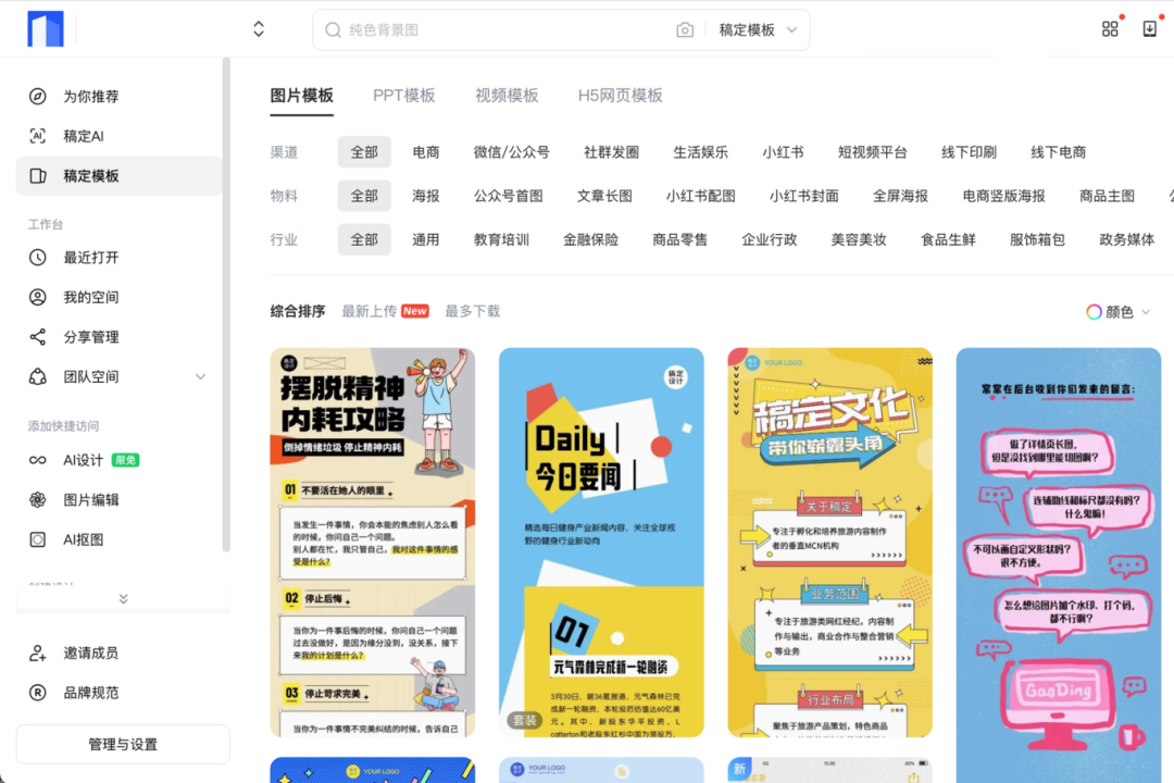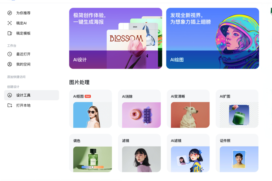 稿定AI是稿定设计推出的一站式AI设计平台,涵盖AI绘图、智能设计、文案生成、图片处理等功能。它将AI技术应用于设计的各个环节,如灵感激发、创作及优化,降低了设计的门槛,提供了全新的设计体验。