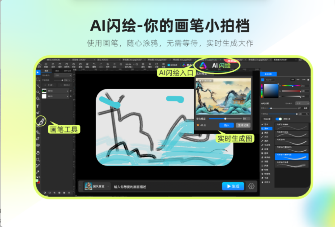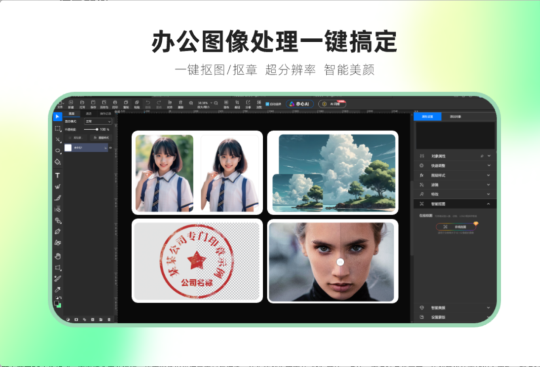 悟空图像是一款国内设计的图像处理软件,它支持超大尺寸图片(50亿像素)处理,兼容PSD文件格式,并能在多个平台上运行。它内置大量素材和模板,提供超过一百种画笔工具,并具备多种实用功能以满足用户的创意及办公需求。