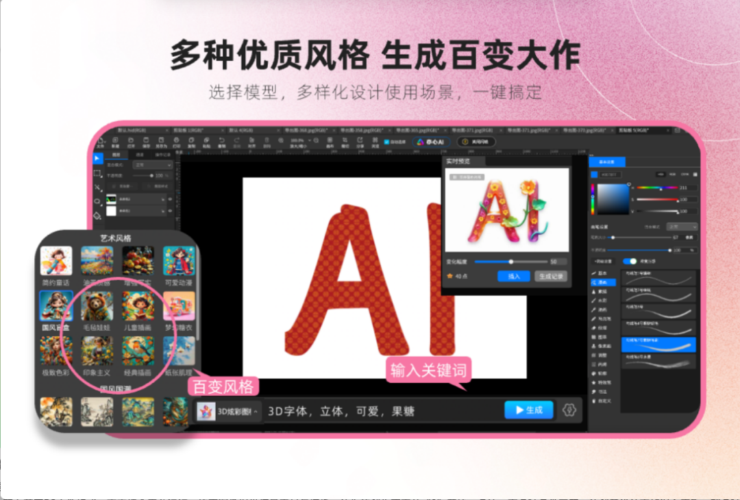 360智绘是一个基于360智脑大模型的AI图片创作平台,提供多功能、多场景的智能生图与修图服务,包含丰富的风格模型,以满足用户多样化的创作需求。
