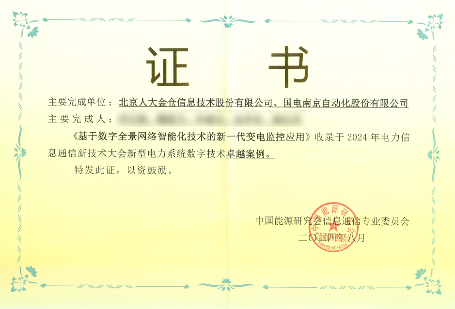 近日,电科金仓受邀参加中国能源研究会主办的2024年电力信息通信新技术大会,携手国电南京自动化股份有限公司(简称“国电南自”)共同完成的案例《基于数字全景网络智能化技术的新一代变电监控应用》经过海选、路演,入选新型电力系统数字技术卓越案例,标志着公司在数据库领域的技术实力和创新能力获得权威认可。