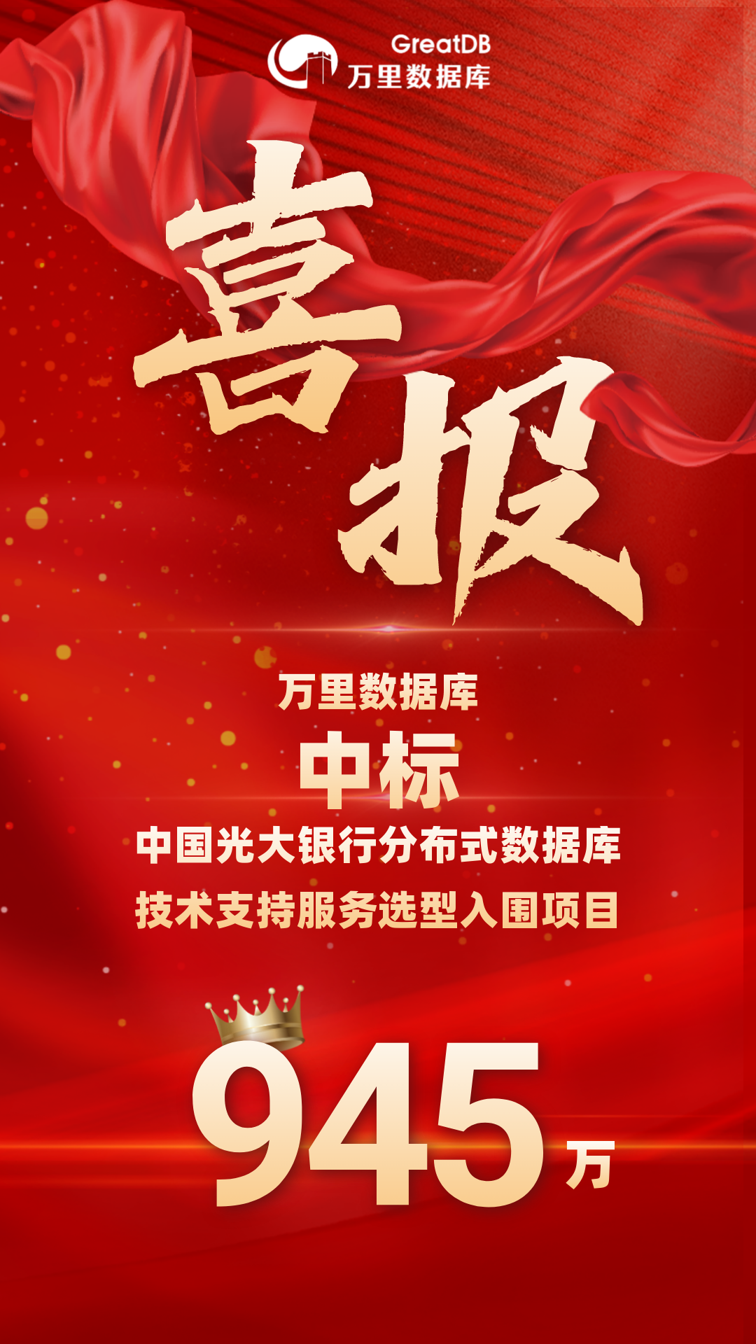 945万!万里数据库中标光大银行分布式数据库技术服务选型项目
