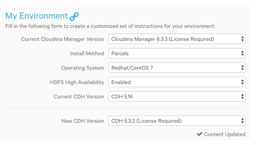 a. 在 Parcel 部分,选择想要去升级的 CDH 版本。