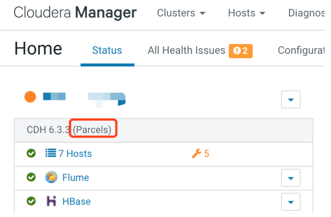在 CDH 集群名称下方可以看到(http://cm-host:7180/cmf/home)