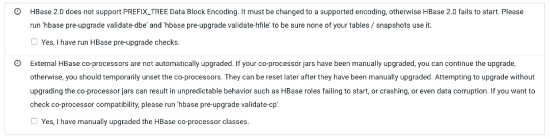 特别需要注意,HBase 等组件升级前要做一些操作,千万不要急着去激活 Parcel。