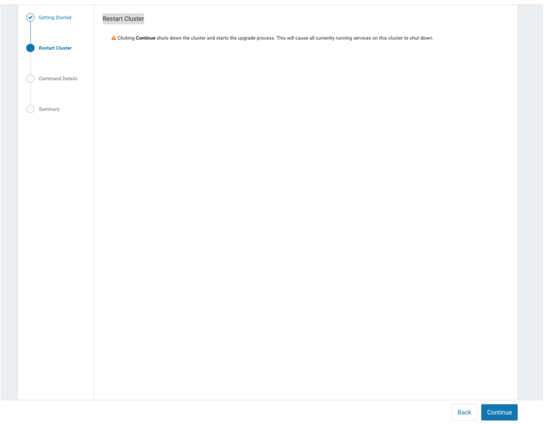 继续点击 Continue,将停止集群服务和开启升级进程。