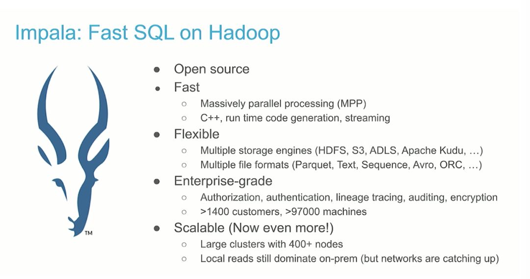 熟悉 Impala 的读者,这张 slide 应该倒背如流了,笔者再总结一下,照顾到所有读者: