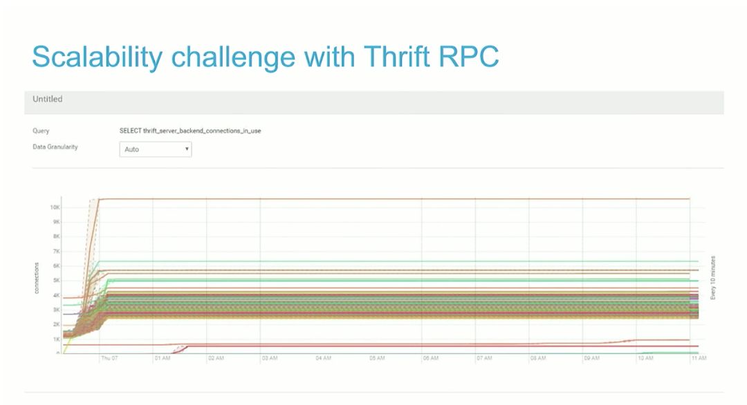 Apache Impala 自 2012 年首次发布以来,已经在各种不同大小的集群上进行了部署和使用。近年来,Impala 部署的规模越来越大,然而 Impala 的 RPC 层(基于 Apache Thrift RPC)可能无法满足需求了。它的同步特性和缺乏连接多路复用使得 Impala 消耗了过多的内核资源,经常导致 Impala 集群的不稳定性和查询失败。