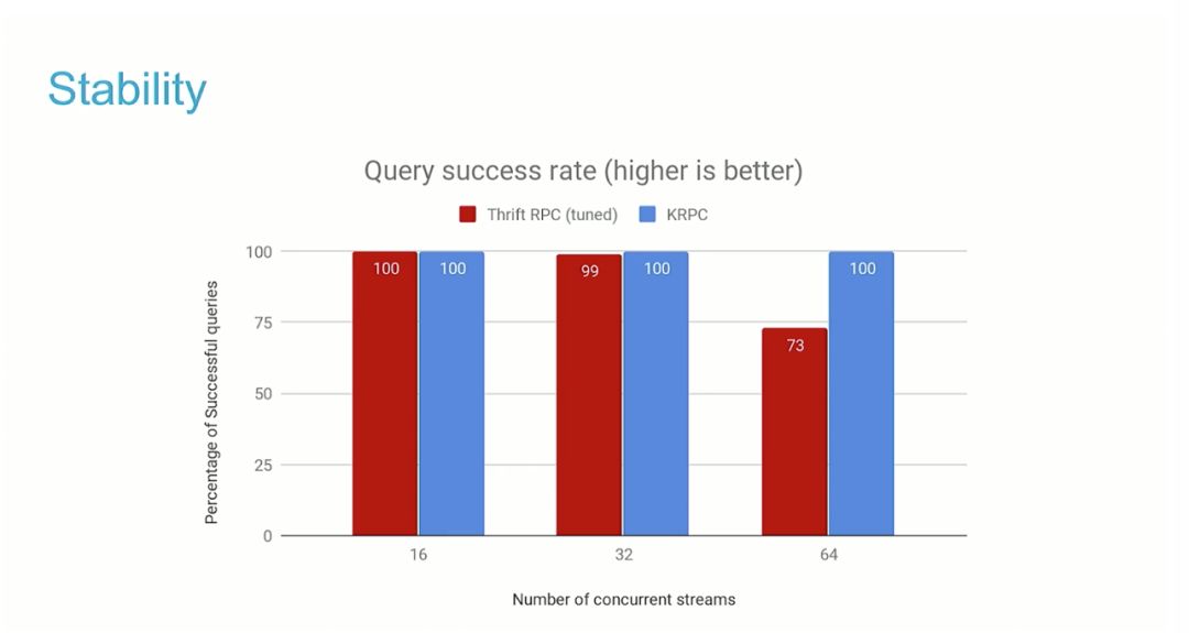 为了解决上述问题,社区经过不断探索,决定在内部 RPC 上采用 Apache Kudu 项目的 RPC 实现(即 KRPC)。