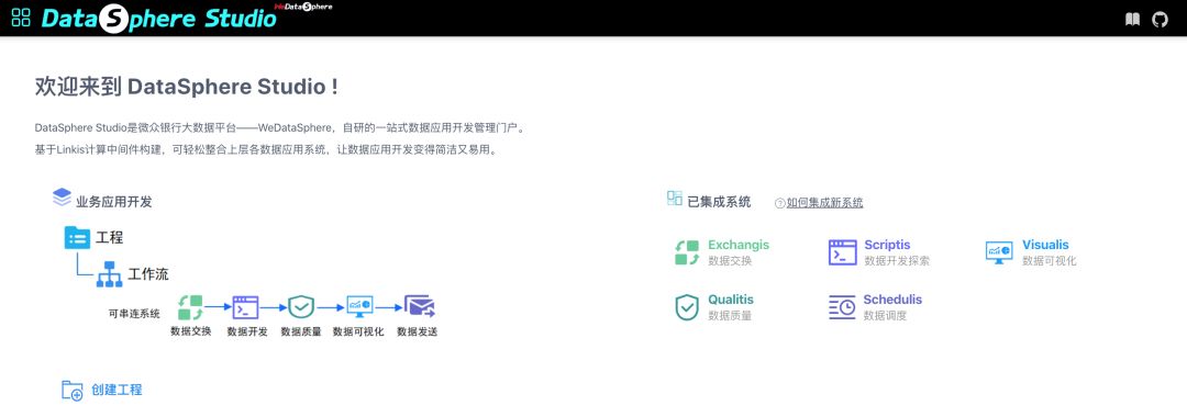 DataSphere Studio 是微众银行大数据平台自研的一站式数据应用开发管理门户,闭环涵盖数据应用开发全流程。在统一的 UI 下,以工作流式的图形化拖拽开发体验,满足从数据导入、脱敏清洗、分析挖掘、质量检测、可视化展现、定时调度到数据输出应用等,数据应用开发全流程场景需求。