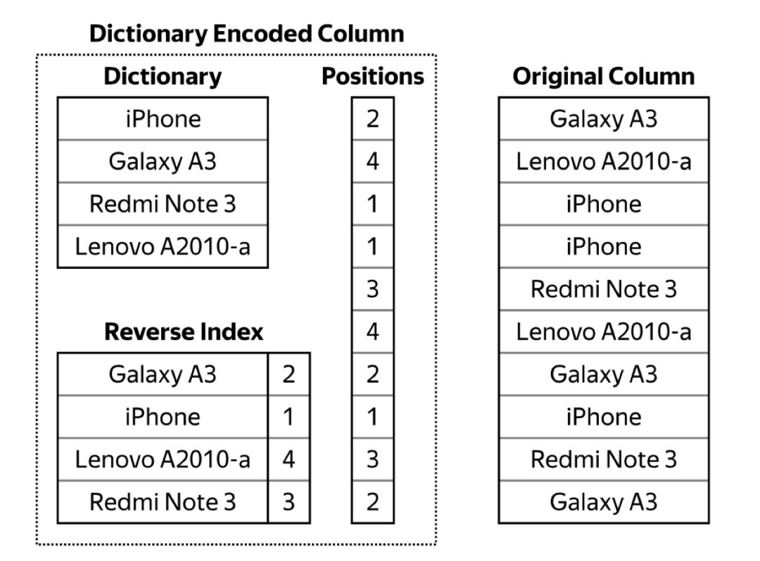 的映射引用字典。当源字符串很长且去重后值的数量不是很大时,它的效果最佳。ClickHouse 没有硬性限制具体去重后值的大小,如果去重后值的数量低于 1000 万,效果通常会很好。对于具有多个 partition 和 part 的 ClickHouse 大表,如果在 part 级别保留 1000 万限制,则去重后值的总数甚至可能更高。