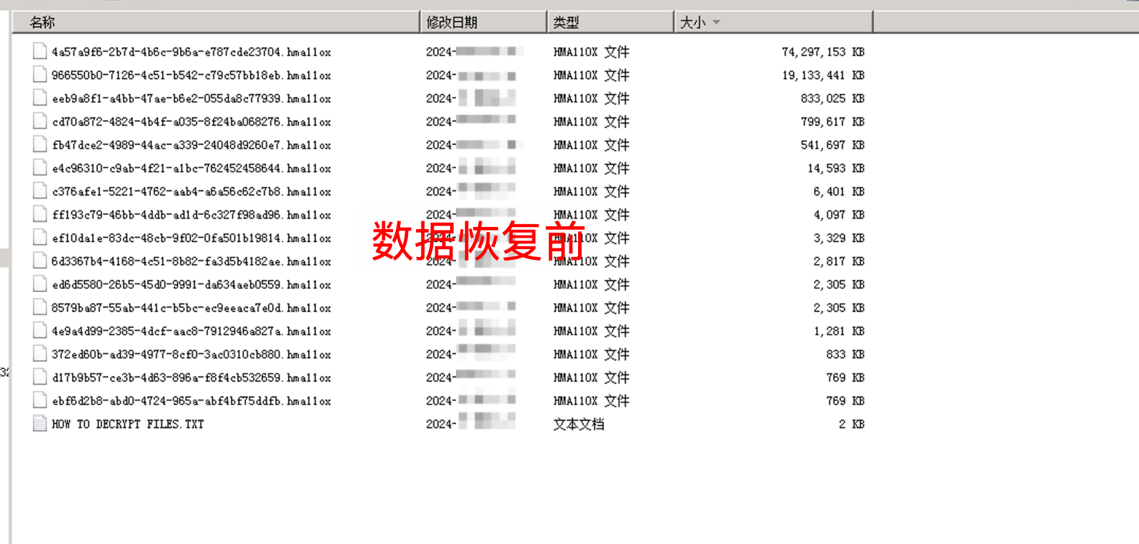 被.hma11ox勒索病毒加密后的数据恢复案例: