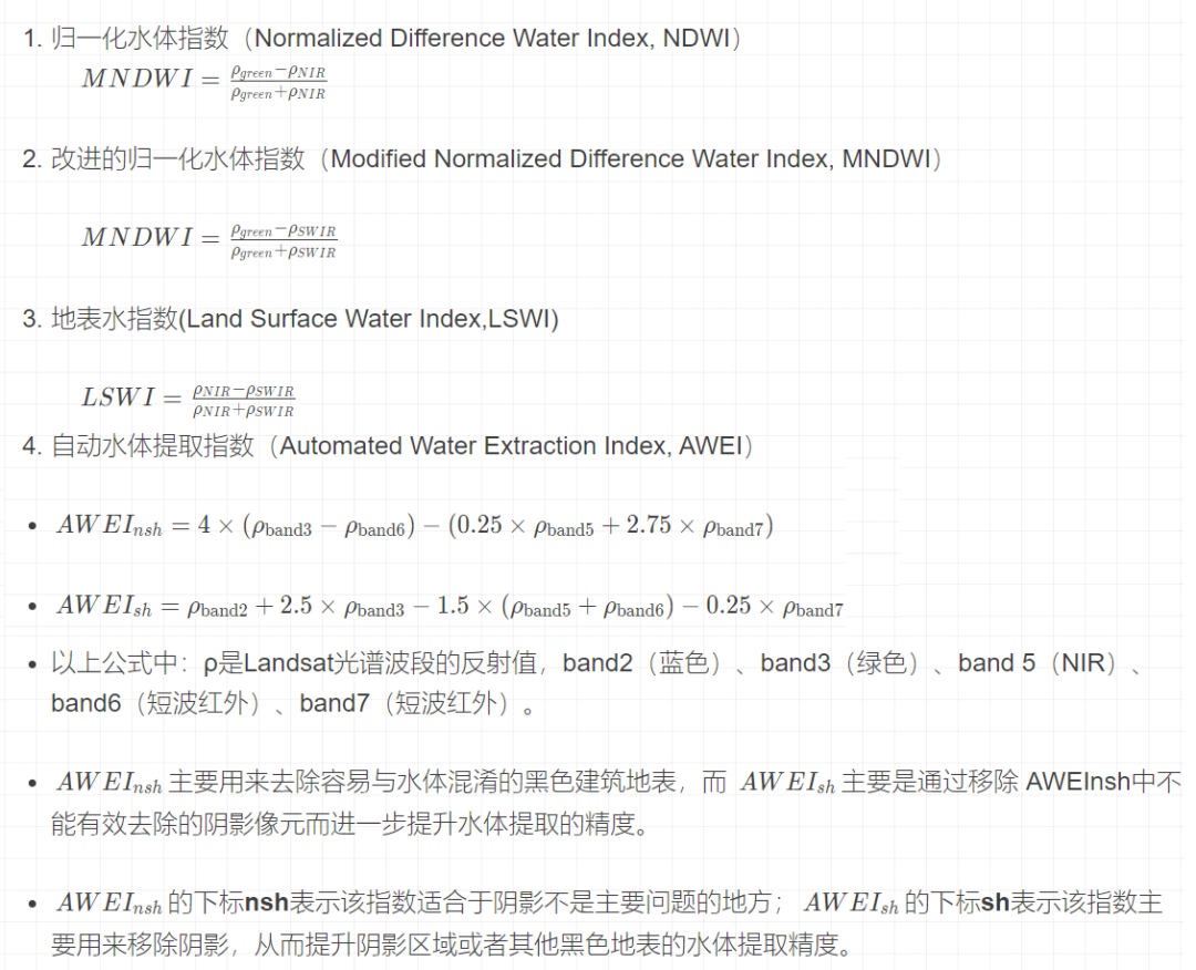 说明:以下都是通过计算某一种水体指数然后通过控制阈值直接对水体进行提取