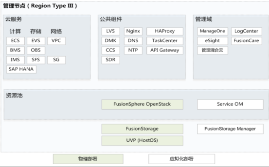 包含源池层FusionSphere OpenStack控制节点、云服务、公共组件和管理域组件