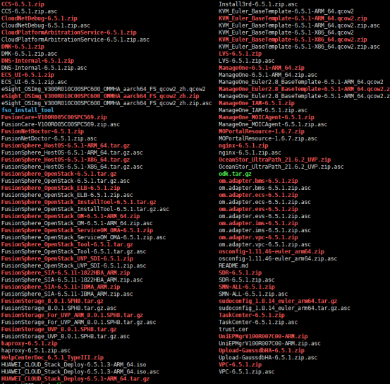华为云Stack 6.5.0 软件包下载列表 | |