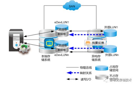 l 接管源存储:通过异构虚拟化功能接管源存储。