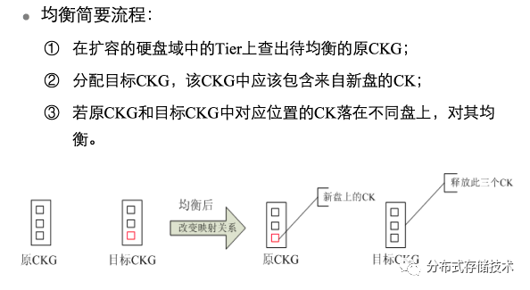 第二种:smartmotion,当新盘加入硬盘域的时候,会实现自动负载均衡,查出待均衡的原CKG。分配目标CKG,该CKG包含自新盘的CK,如果原CKG和目标CKG中对应的CK落在不同的盘上,实现负载均衡。