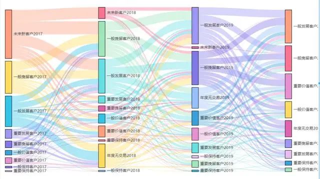 交互性:考虑为桑基图添加交互性,例如鼠标悬停显示详细信息、点击节点展开子节点等。交互性可以增强用户体验,使得用户能够更深入地探索数据。